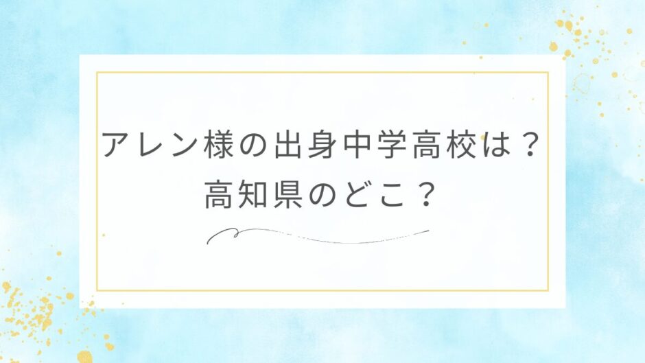 今回は【アレン様の出身中学高校は高知のどこ?いじめから中高一貫校に進学?聖地巡礼コースを紹介!】と題してお届けします。